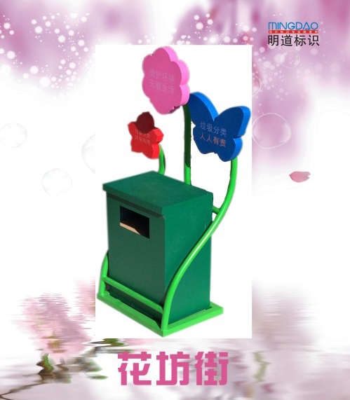 明道標(biāo)識(shí)設(shè)計(jì)的花園坊社區(qū)商業(yè)街標(biāo)識(shí)系統(tǒng)主要包括:主題招牌,精神堡壘,多向指示牌,環(huán)衛(wèi)垃圾箱等。