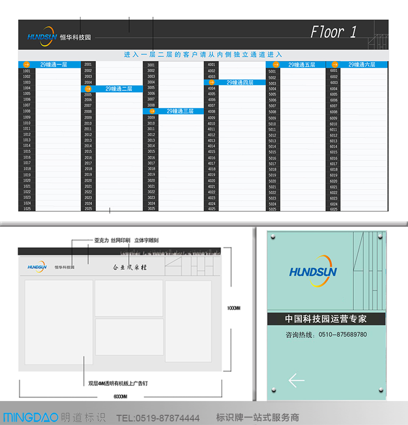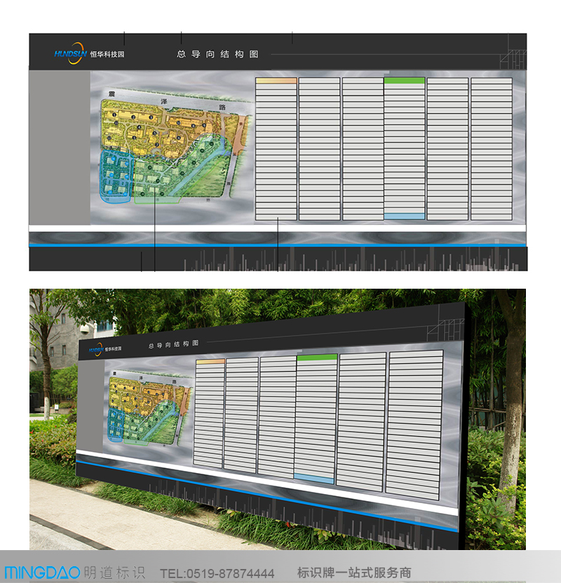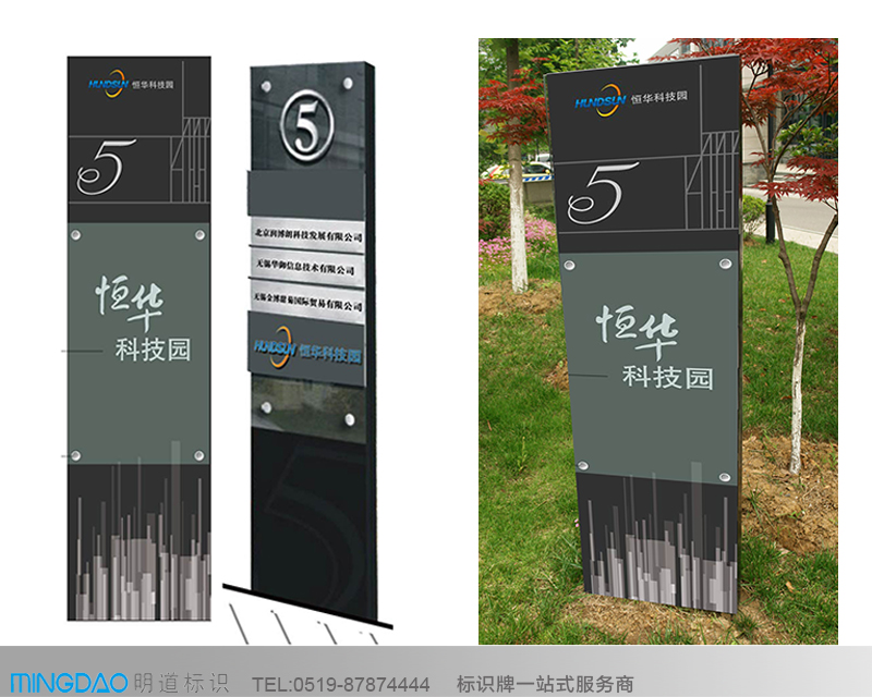 下圖是明道標識設計的一款經典的工業園區及企業單位導視系統。該企業單位導視系統主要包括企業園區
