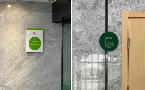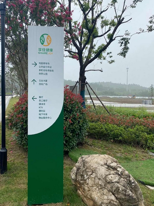 享佳健康園區內的導視標識由常州明道標識負責設計制作,標識導視牌包括:公司精神堡壘、廠區指示牌、門號牌、功能區標牌、樓層索引等標識標牌。