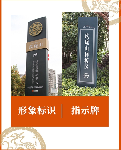 明道標識承接了玖瓏山項目的標識系統設計制作和施工,針對于該樓盤典雅復古、莊重大氣的設計風格,明道標識在設計標識系統時,采用穩重的藍灰色為主色調,營造出鮮明的精致貴族氣息,與樓盤設計風格一脈相承,交相輝映。