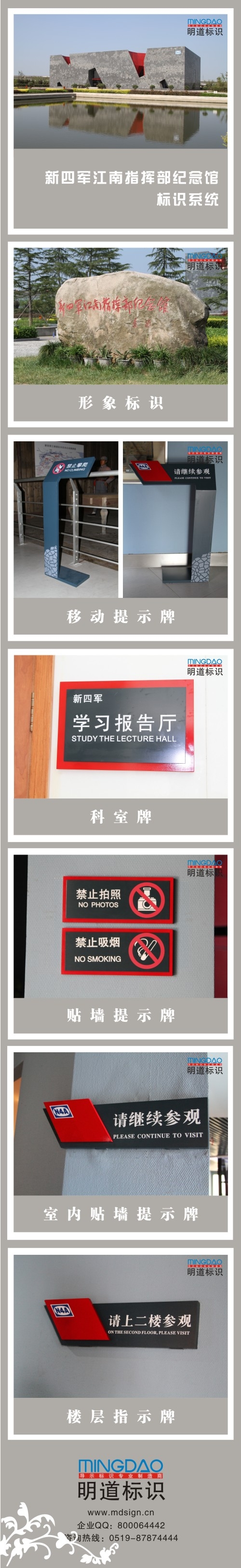 明道標(biāo)識(shí)承接了新四軍江南指揮部紀(jì)念館整體標(biāo)識(shí)系統(tǒng)的規(guī)劃設(shè)計(jì)施工,景觀設(shè)施設(shè)計(jì)施工安裝,休閑設(shè)施設(shè)計(jì)施工安裝,公共設(shè)施設(shè)計(jì)施工安裝,環(huán)衛(wèi)設(shè)施設(shè)計(jì)施工安裝、亮化工程等,主要新增標(biāo)識(shí)標(biāo)牌設(shè)施有:形象標(biāo)識(shí),指示牌,室內(nèi)科室牌,樓層牌等。