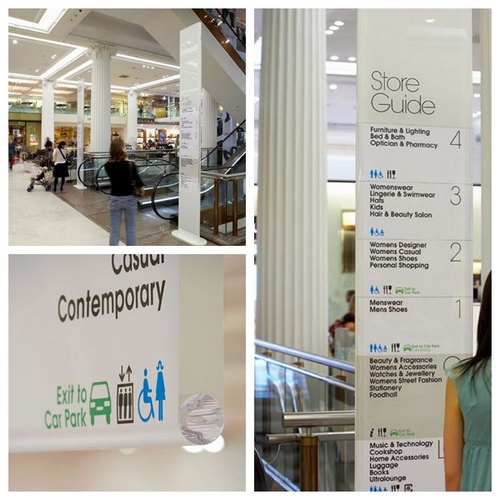 環境導示系統設計拿錢砸出來的.它追求經濟,簡潔,平靜,優雅與活躍繁忙的購物環境形成對比.非常高檔卻不會很貴。