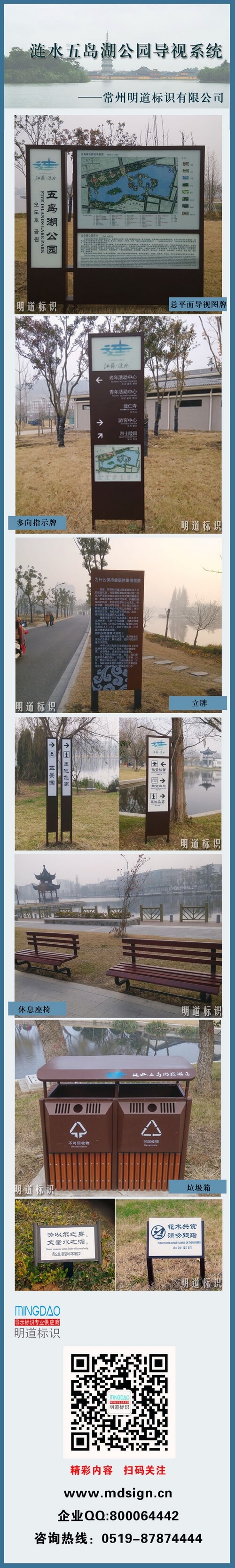 漣水五島湖公園標識系統項目的設計、制作及安裝。針對都市人回歸自然的向往與景區優越的自然環境,明道標識在為其設計