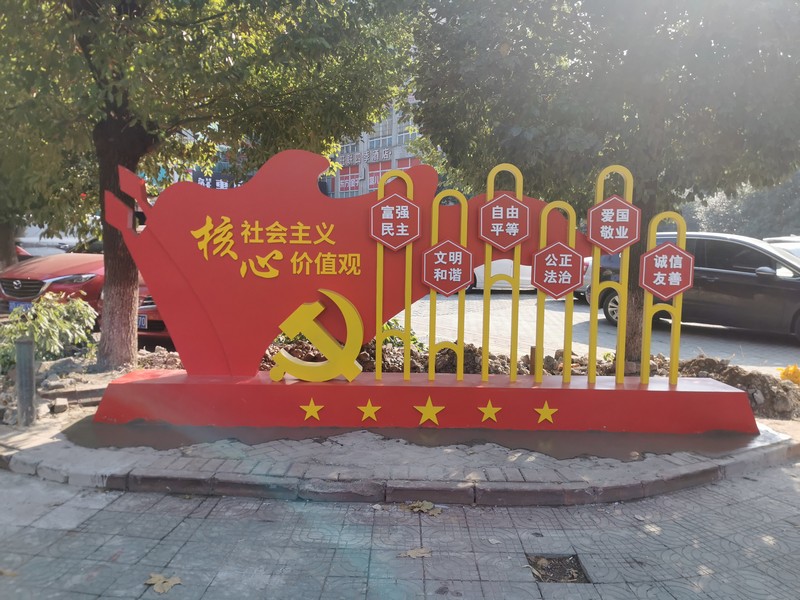 核心價(jià)值觀標(biāo)牌被運(yùn)用于各種場(chǎng)合,如市政單位、公園、企業(yè)、道路旁、街道等等。標(biāo)識(shí)標(biāo)牌的造型多樣且越來(lái)越獨(dú)特新穎,主色調(diào)基本都是紅色,外觀上有著鮮明的特點(diǎn),其內(nèi)容主要為:弘揚(yáng)社會(huì)主義價(jià)值觀和社會(huì)主義文化。核心價(jià)值觀標(biāo)識(shí)還包含宣傳欄,為了避免日曬雨淋,許多宣傳欄會(huì)加一個(gè)頂棚。
