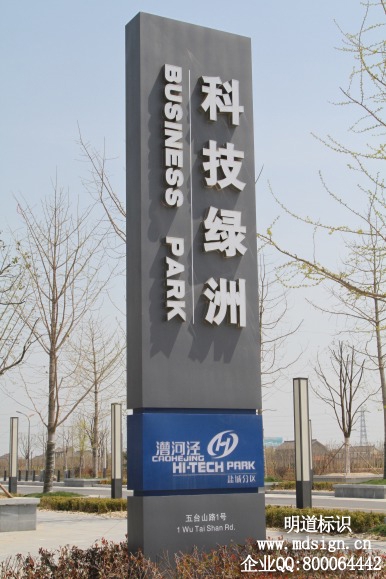 戶外標識牌在材料的選擇上要考慮到標識牌的抗風、防曬、防水(防銹)和美觀等因素確保其不易受自然環境的侵蝕,延長使用壽命。因此企業標識主體一般采用不銹鋼、冷軋板、電解板、石材等,防銹好的材料是不銹鋼和電解板,冷軋板烤漆之后也可以起到防銹的作用。標識牌的抗風能力取決于所用材料的厚度,尺寸越大的標識牌用的材料越厚,預埋也需相應做大一些。表面圖文部分則可以根據頁面效果選擇平面的絲網印刷,或者立體的粘貼亞克力、PVC、不銹鋼字等,需要做成發光的則在主體板材激光鏤空出文字內容,內打燈,覆一層燈箱片或亞克力等透光的材料即可。有些企業標識用整體吸塑燈箱,這就有很高的專業要求,最好找明道標識這樣的大型制作廠家制作。此外我們對標識標牌隔段進行保養,這樣會延長標識牌的使用時間,延長其使用壽命。