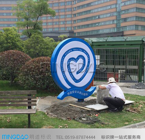 。多用鋼板或不銹鋼板烤漆制作,也有石材,木材或其他建筑材質(zhì)來制作的,起到展示企業(yè)形象和地標(biāo)的效果。