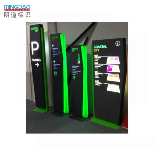 、導視牌、索引牌、)時,重點考慮這款索引標識與環境的統一性與豐富性相融,采用了較為簡單的色彩印刷工藝配合綠色led光源,造型時尚、設計新穎在本項目中得到了充分的發揮,為用戶營造了極舒適的指引服務。